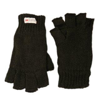 Mens black fingerless knitted gloves with elasticated cuff